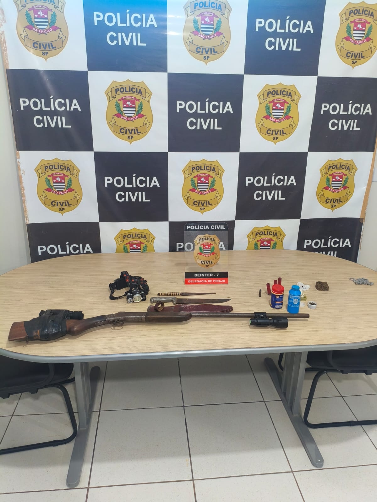 Policiais civis da Delegacia de Piraju prenderam, na manhã desta quinta-feira (11/12/2025), um homem de 20 anos após flagrá-lo portando uma espingarda calibre 28 na Vila Saens. O suspeito foi visto na garupa de um mototáxi exibindo a arma de forma ostensiva, o que motivou intervenção imediata da equipe policial.