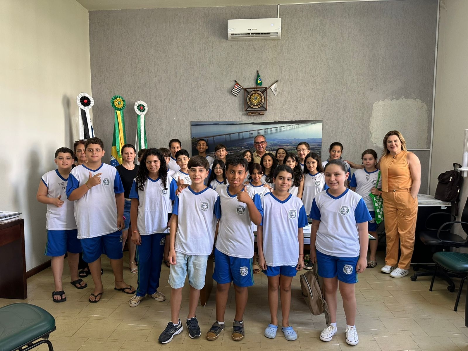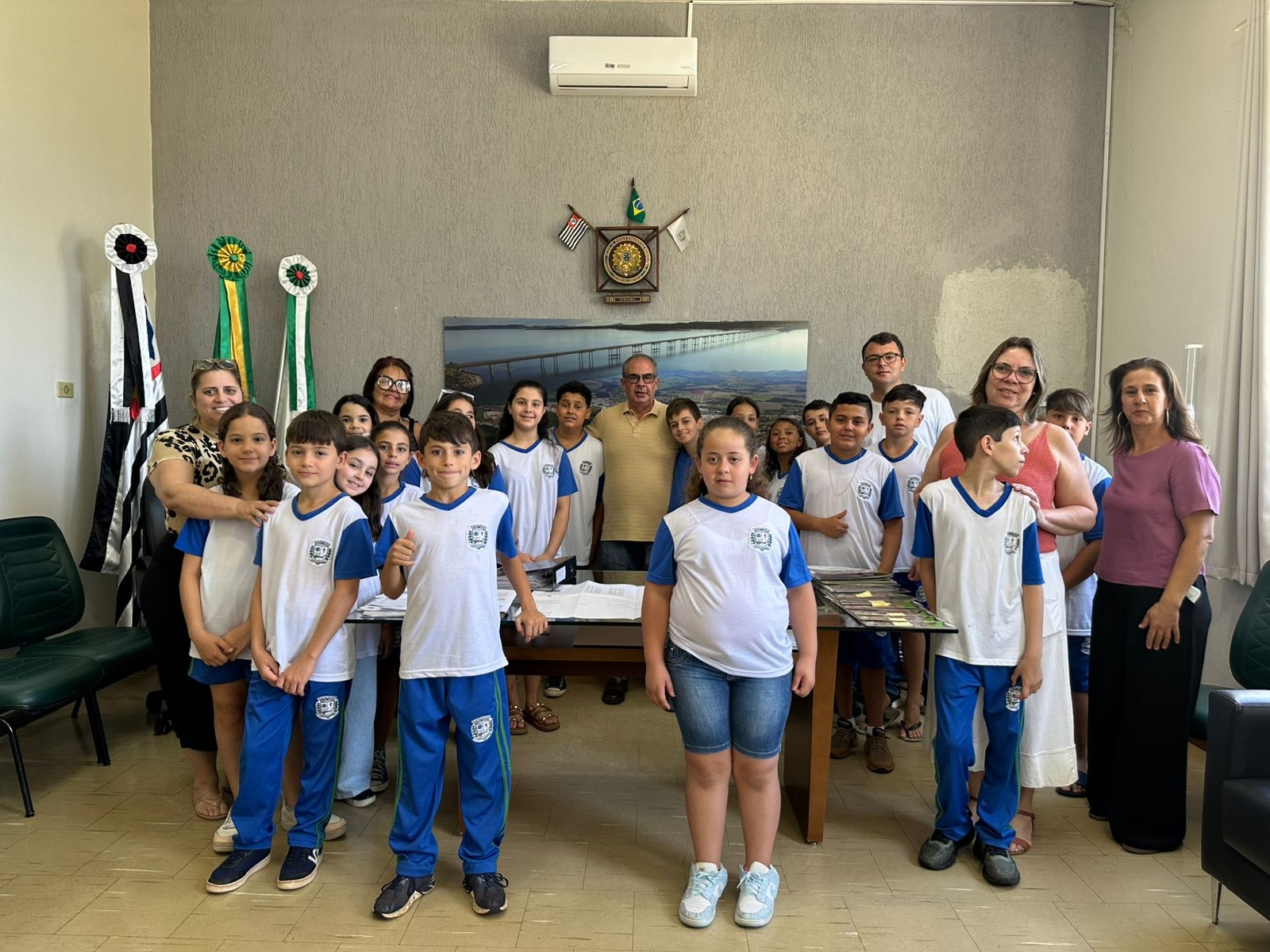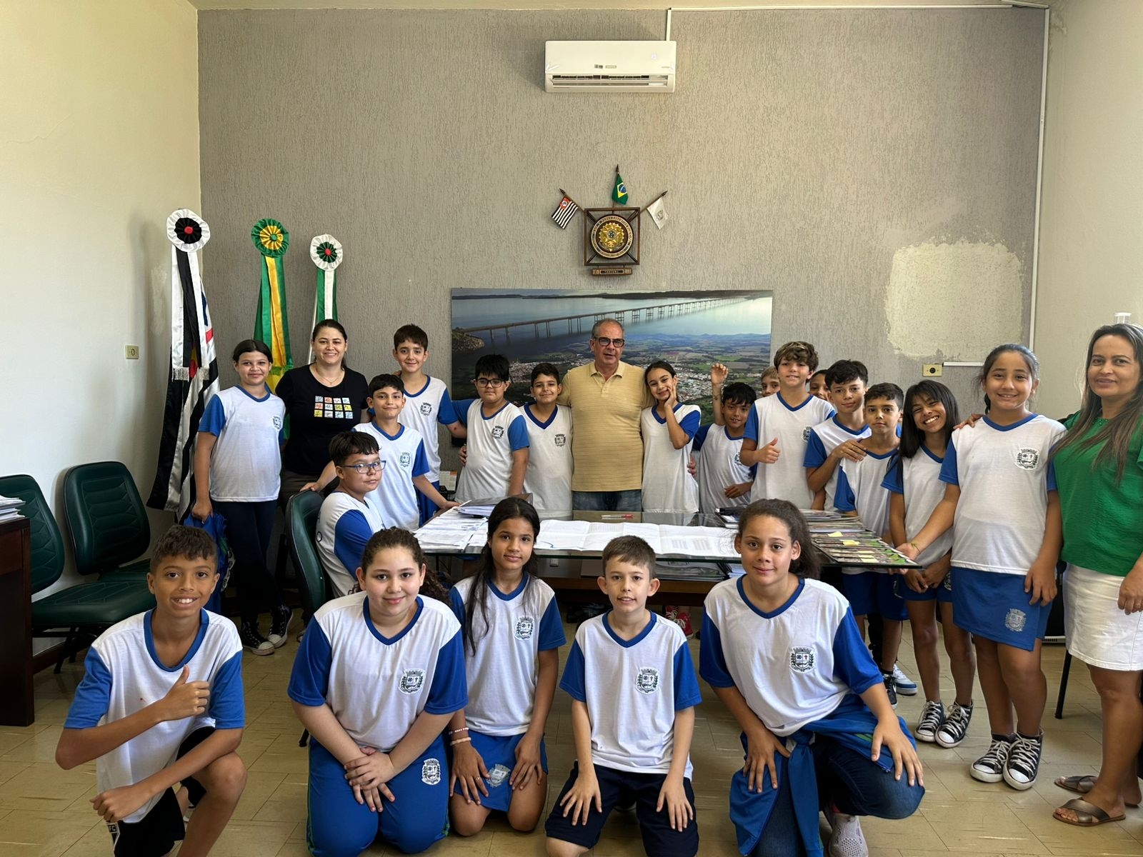 A atividade teve como objetivo aproximar as crianças do funcionamento da administração pública, apresentando os setores, serviços e equipes que trabalham diariamente para atender a população.