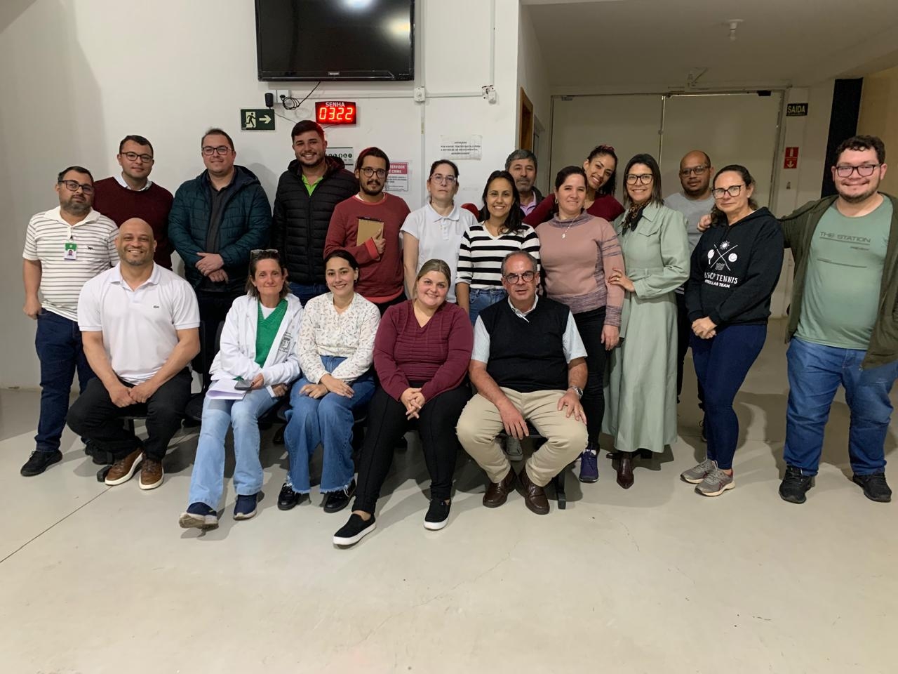 Equipe da Farmácia Municipal e autoridades durante a reunião