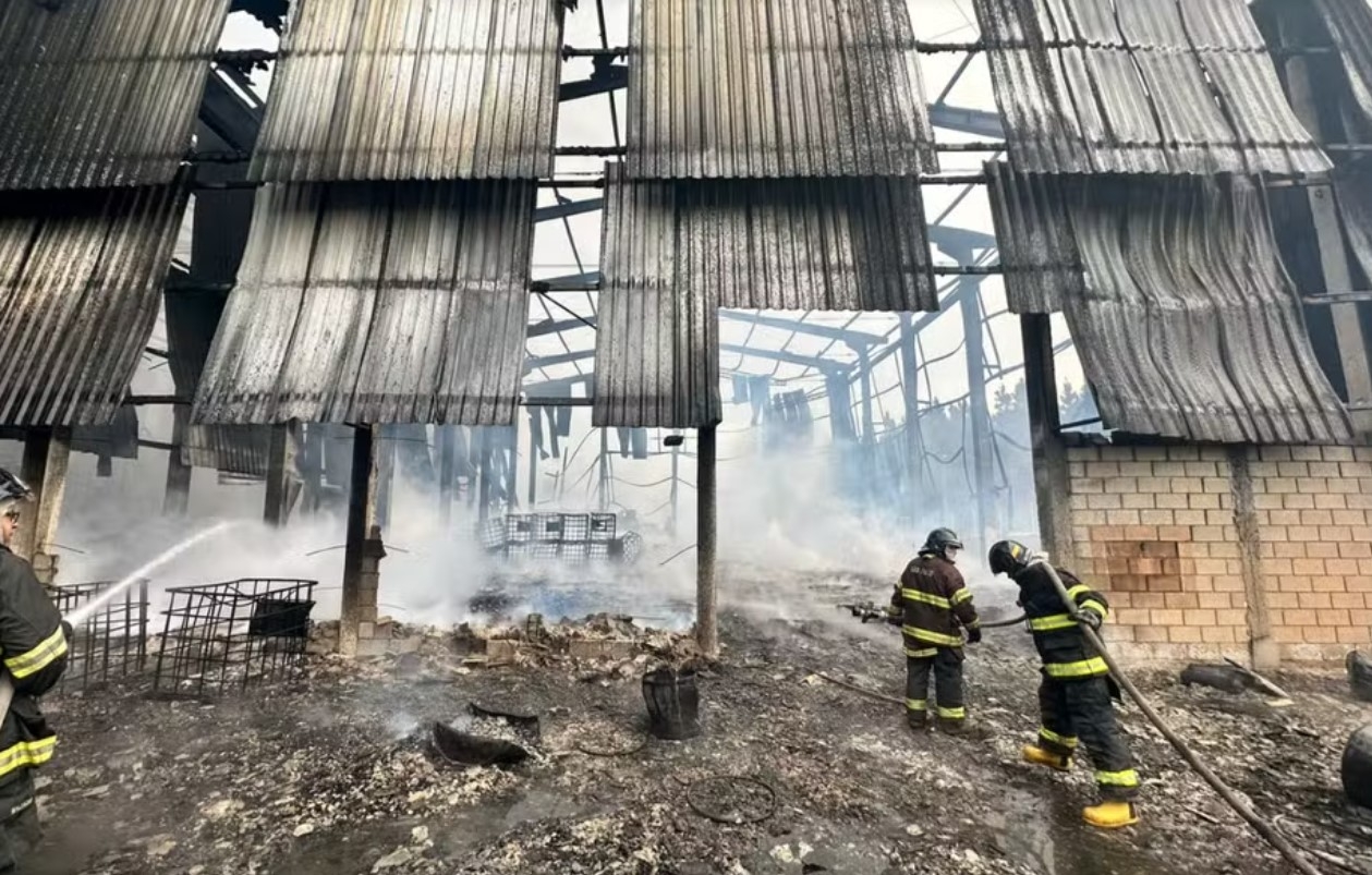 Um incêndio de grandes proporções destruiu parte de uma fábrica de pinus e resina no bairro Fundão, em Buri (SP), nesta quarta-feira (27). As chamas começaram por volta das 2h13 e só foram controladas às 13h05, após mais de 10 horas de combate.
