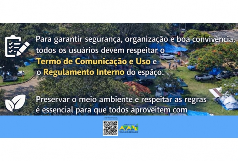 Como parte da preparação para o Carnaval, a administração reforça a vigência do Termo de Comunicação e Uso e do Regulamento Interno do Camping, que estabelecem regras claras para utilização do espaço, preservação ambiental e convivência coletiva.