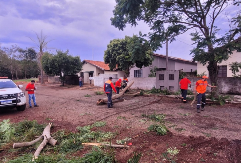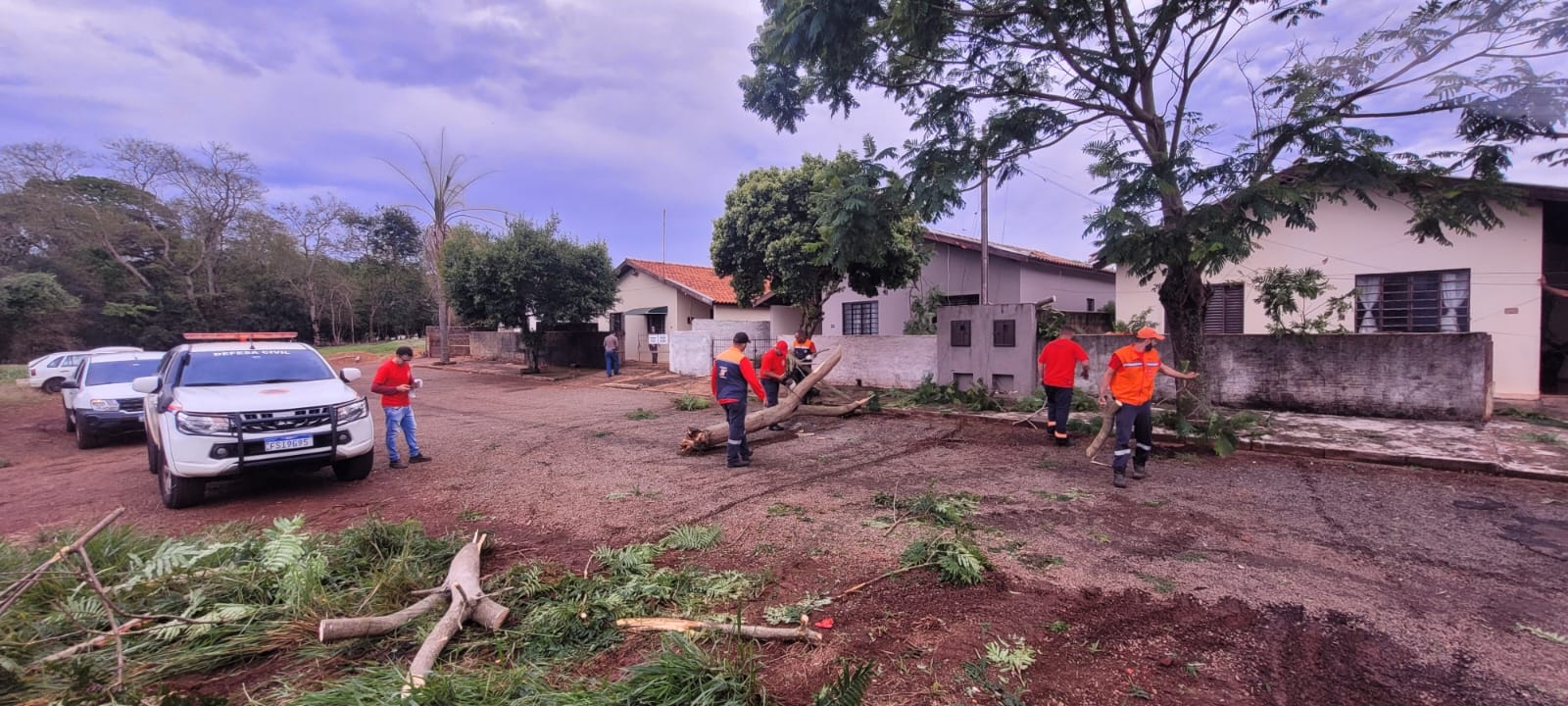 Desde as primeiras horas do incidente, as equipes da Defesa Civil vêm atuando nos atendimentos emergenciais, priorizando a remoção de árvores caídas, liberação de vias públicas e vistoria de estruturas que possam ter sido danificadas.