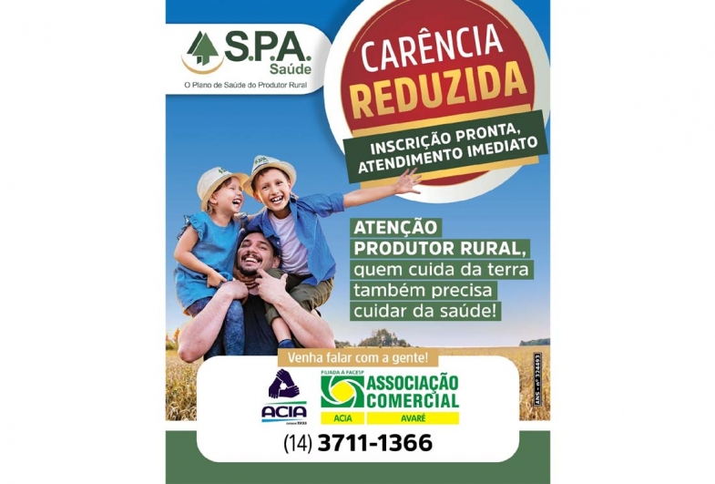 No âmbito local, a Acia de Avaré anunciou uma campanha de carência reduzida do S.P.A. Saúde, voltada especialmente ao produtor rural. A iniciativa busca facilitar o acesso ao plano de saúde, garantindo mais proteção, segurança e bem-estar para os associados e suas famílias.