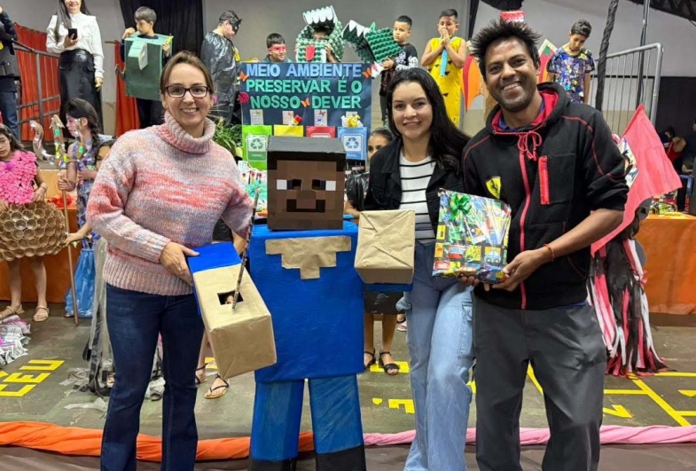Além do desfile, os jurados também avaliaram os brinquedos produzidos com materiais recicláveis, premiando as três melhores criações, que também se destacaram pela criatividade.