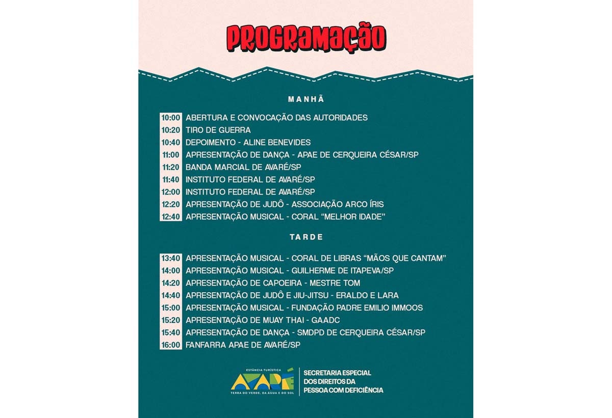 A 11ª edição de “A Comunidade e a Pessoa com Deficiência” é uma realização da SEDPD em parceria com secretarias municipais, entidades e iniciativa privada. Confira abaixo a programação completa.