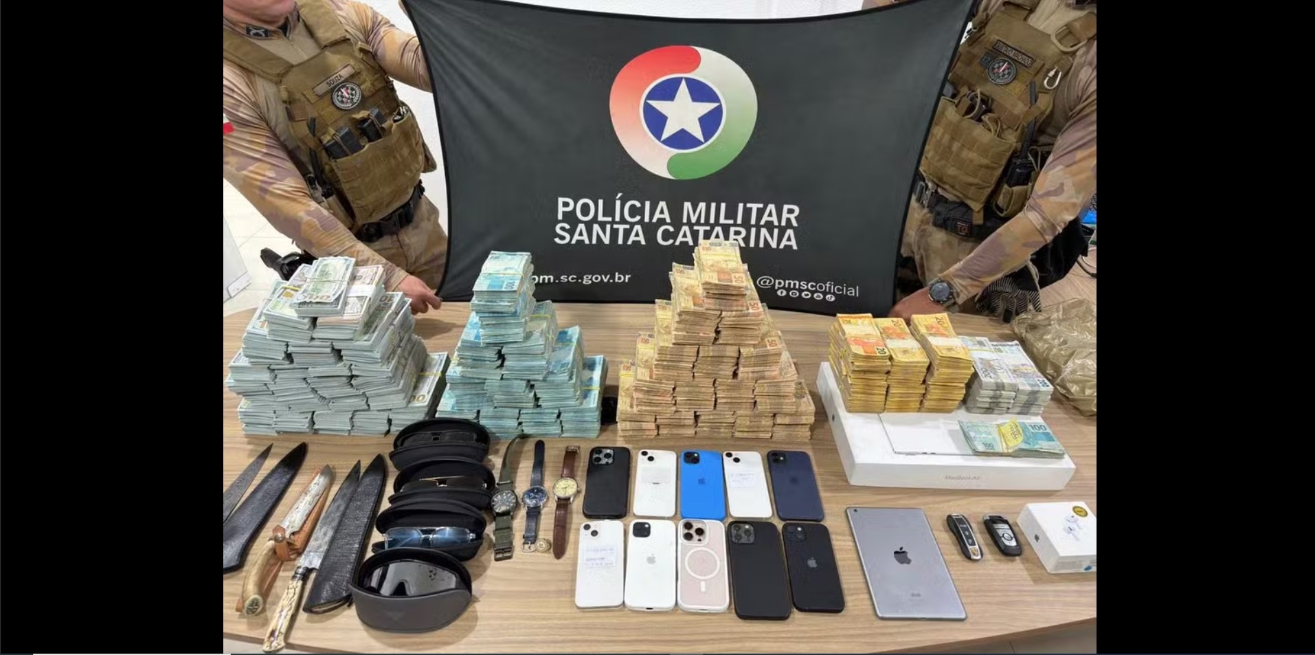 No momento da prisão, os agentes encontraram mais de R$ 5 milhões em dinheiro vivo, em reais e dólares, além de relógios e celulares. A captura dele ocorreu após os policiais receberem informações de que o suspeito estaria hospedado em um hotel no bairro Ilhota.