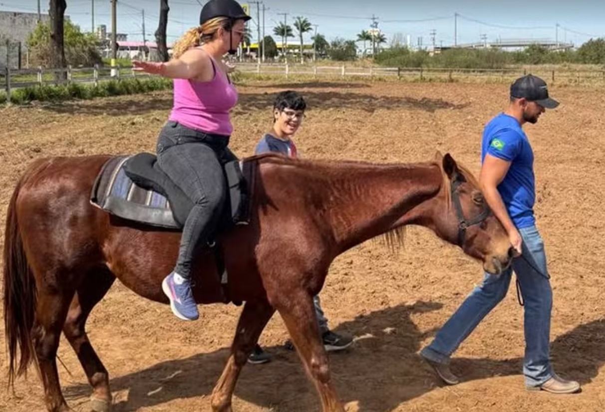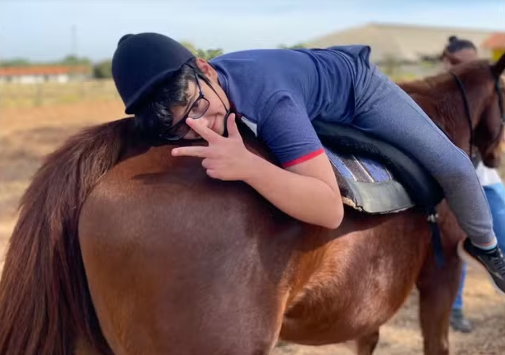 A assistente social Karina Luzia de Oliveira descobriu na equoterapia uma esperança para ela e seu filho Miguel, de 12 anos, ambos diagnosticados com transtorno do espectro autista, em Avaré (SP). Os benefícios da atividade são oferecidos de forma gratuita, por meio de uma associação mantida por voluntários na cidade.