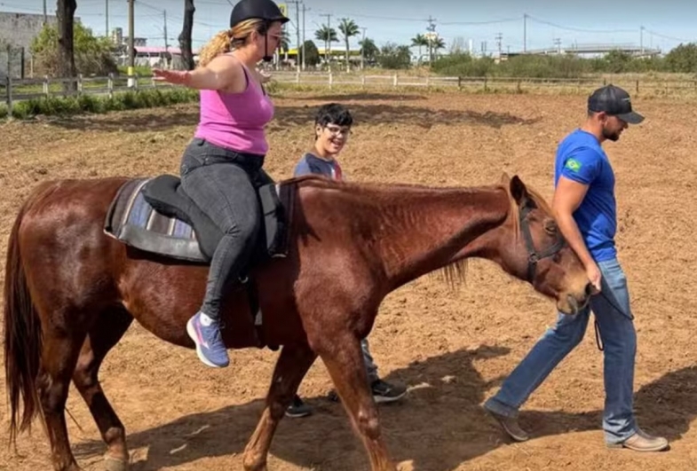 A equoterapia apresenta benefícios amplamente reconhecidos. No caso da mãe e do filho, que começaram com a prática em abril, eles são particularmente especiais, pois só encontrariam o tratamento em outra cidade, por meio de convênio ou medida judicial.