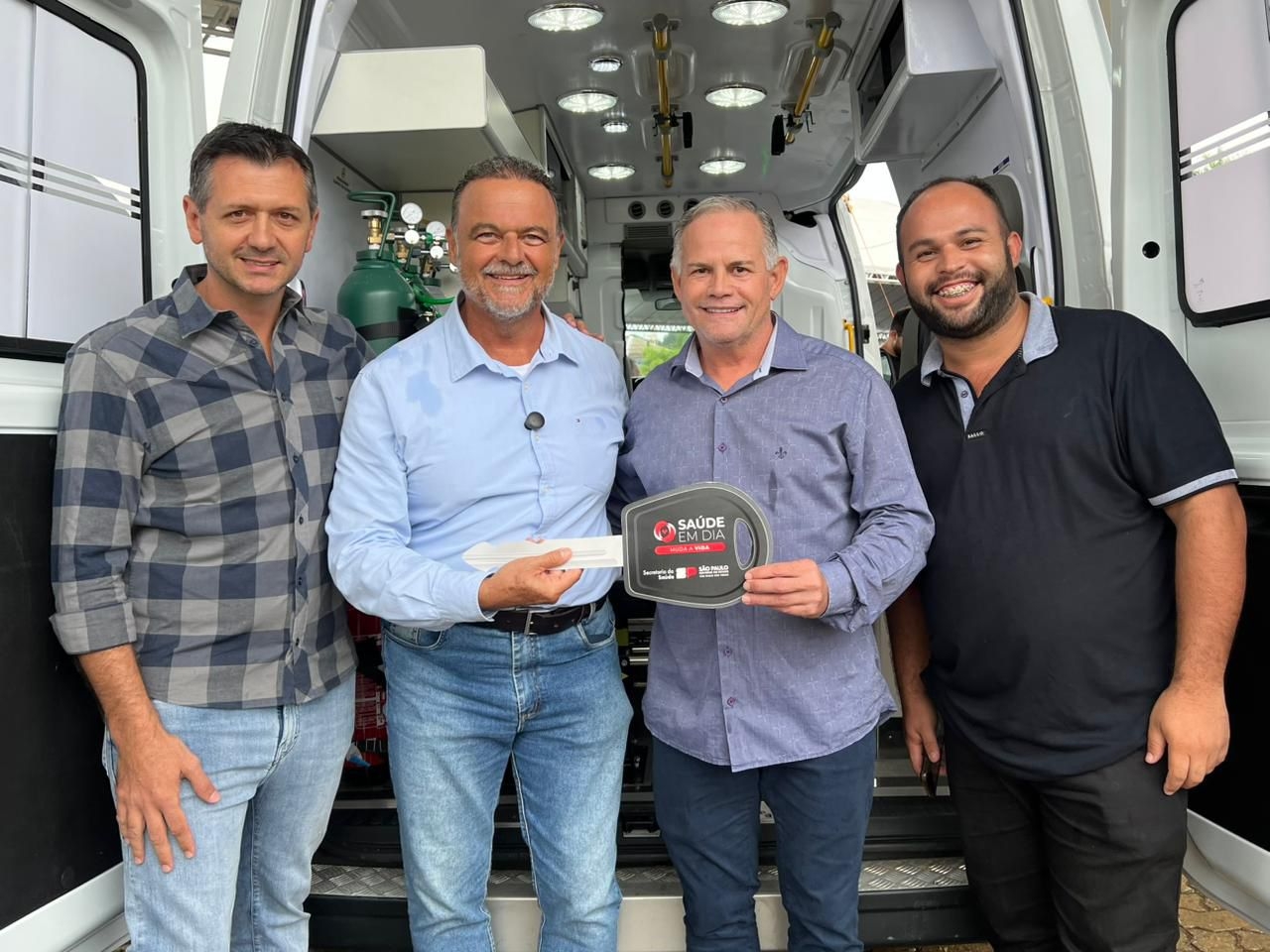 O prefeito de Taguaí, Edinho Fundão, e o vice-prefeito Rafael Corona participaram nesta quinta-feira (12) em Itu, da cerimônia de entrega de novos veículos destinados à área da saúde, realizada pelo governador do Estado de São Paulo, Tarcísio de Freitas.