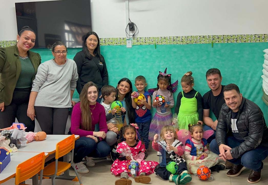 Todas as crianças da rede de ensino municipal receberam os presentes, transformando o ambiente escolar em uma festa. “Ver o sorriso de cada criança é o maior presente que podemos receber”, disse o vice-prefeito Vinicius Tonon.