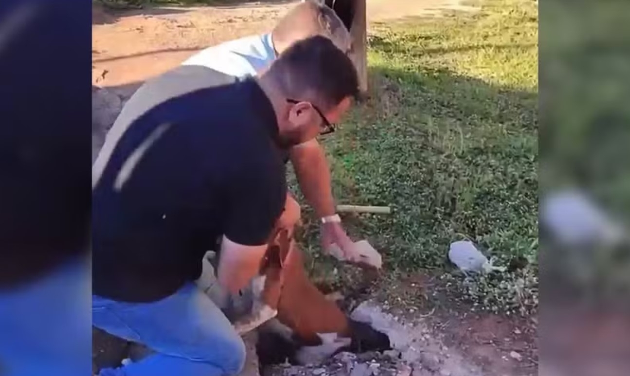 “Não consegui fazer contato com os bombeiros. Com receio de que os cães sumissem pela tubulação, resolvemos pegar ferramentas emprestadas por moradores e começamos a quebrar a tampa do bueiro”, contou o secretário.