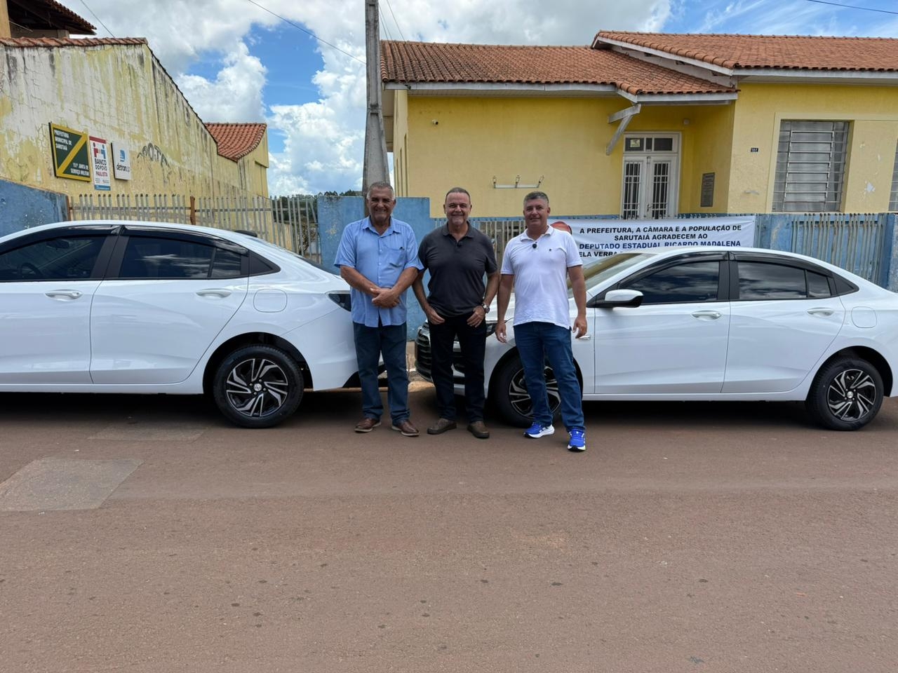 A Prefeitura de Sarutaiá recebeu, no dia 31 de dezembro, dois veículos 0km, modelo Ônix Sedan Turbo, que passam a reforçar a frota da Saúde do município. Os automóveis foram destinados por meio de verba do deputado Ricardo Madalena, atendendo a um pedido do vereador Rodrigo Fuloni.