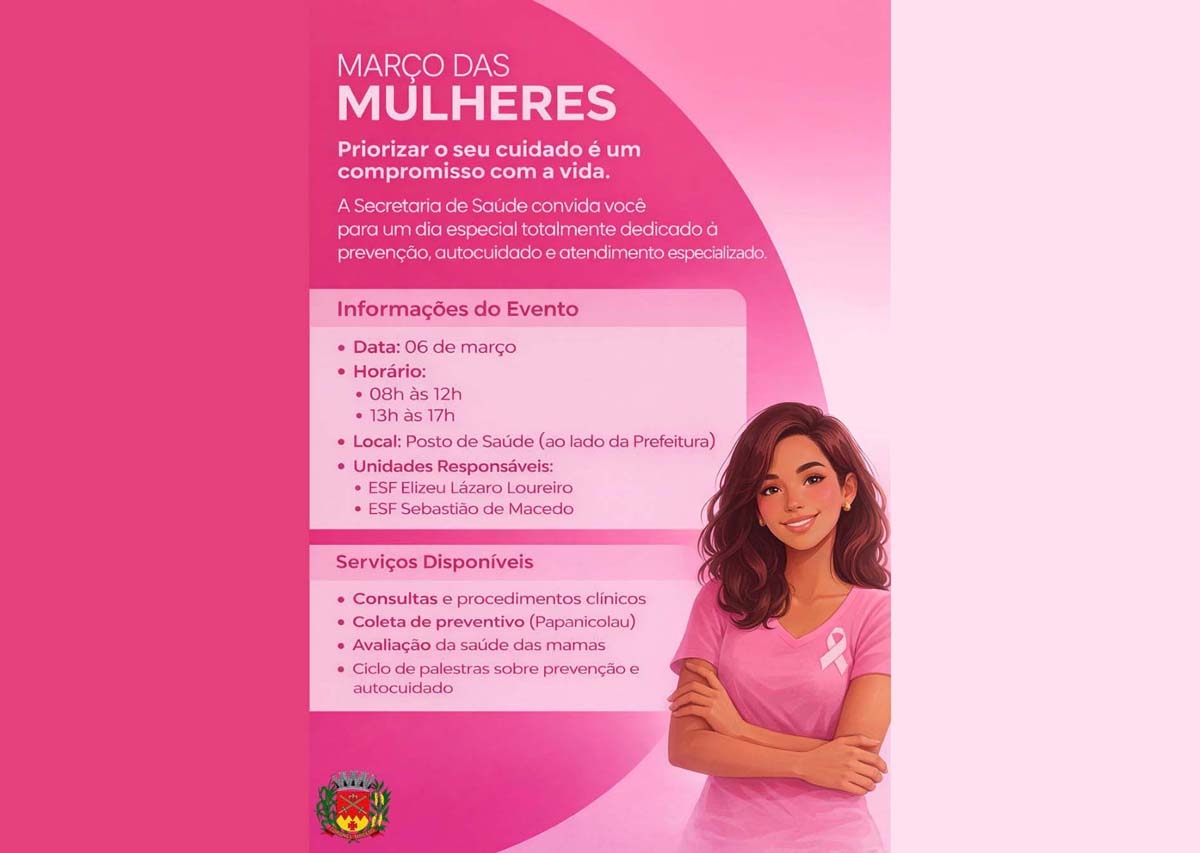 Neste mês dedicado às mulheres, a Secretaria de Saúde preparou um dia especial voltado ao que há de mais importante: a sua saúde e bem-estar. A programação contará com atendimento especializado, exames preventivos e momentos de aprendizado e orientação.