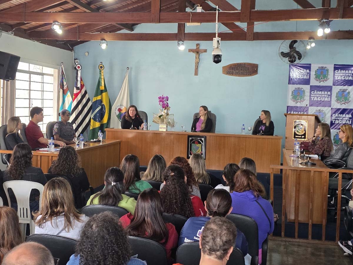 Na segunda-feira (18), a Câmara Municipal de Taguaí sediou o 3º Fórum do Agosto Lilás, evento que integra a campanha nacional de conscientização pelo fim da violência contra a mulher. A iniciativa, promovida pelo CRAS em parceria com a Secretaria Municipal de Assistência Social, teve como objetivo ampliar as ações de prevenção, orientação e mobilização da sociedade, além de fortalecer a rede de proteção às mulheres do município.