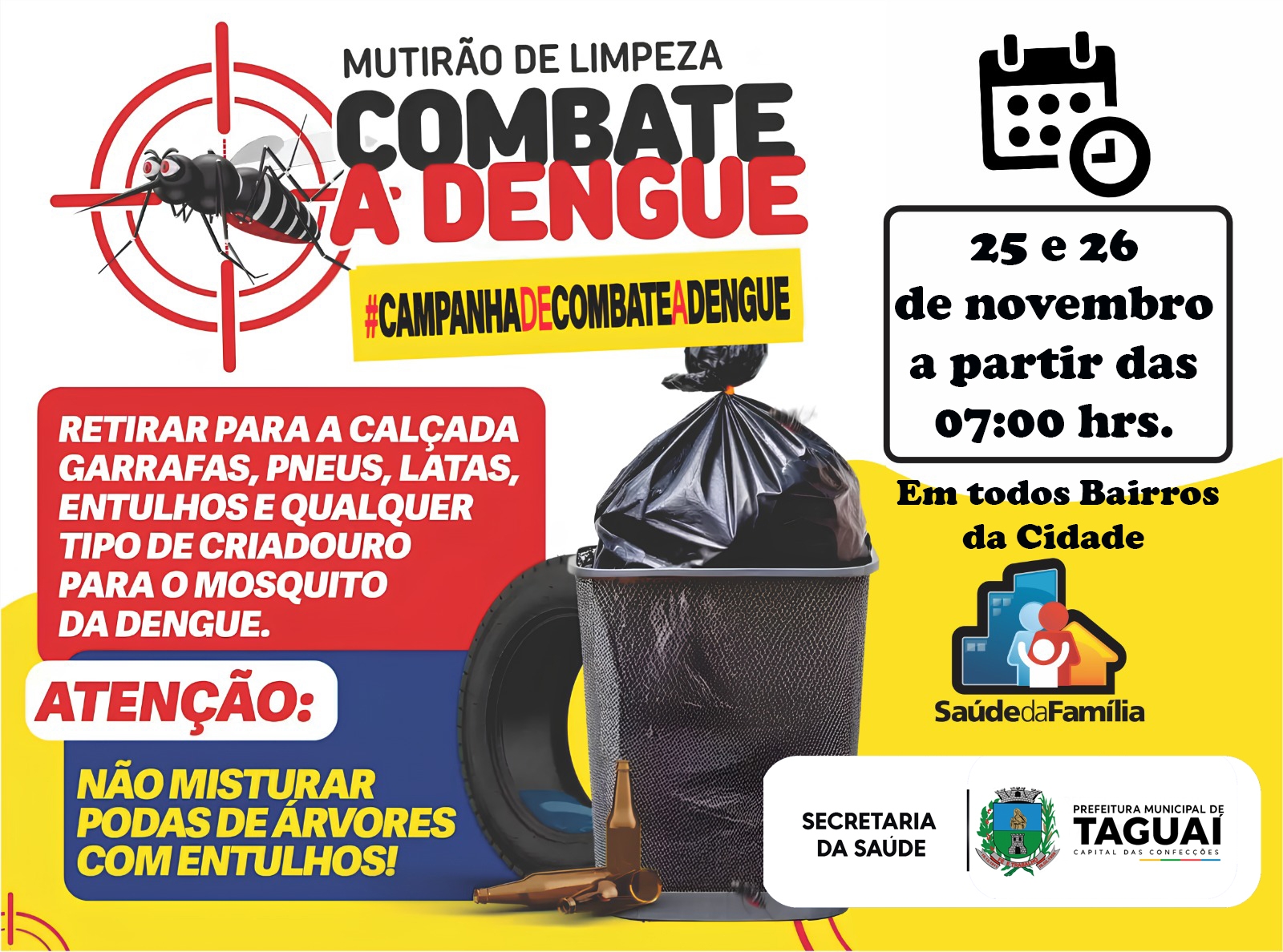 Taguaí realiza campanha de limpeza contra a dengue