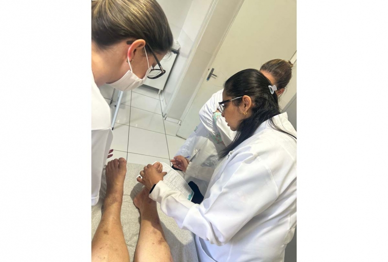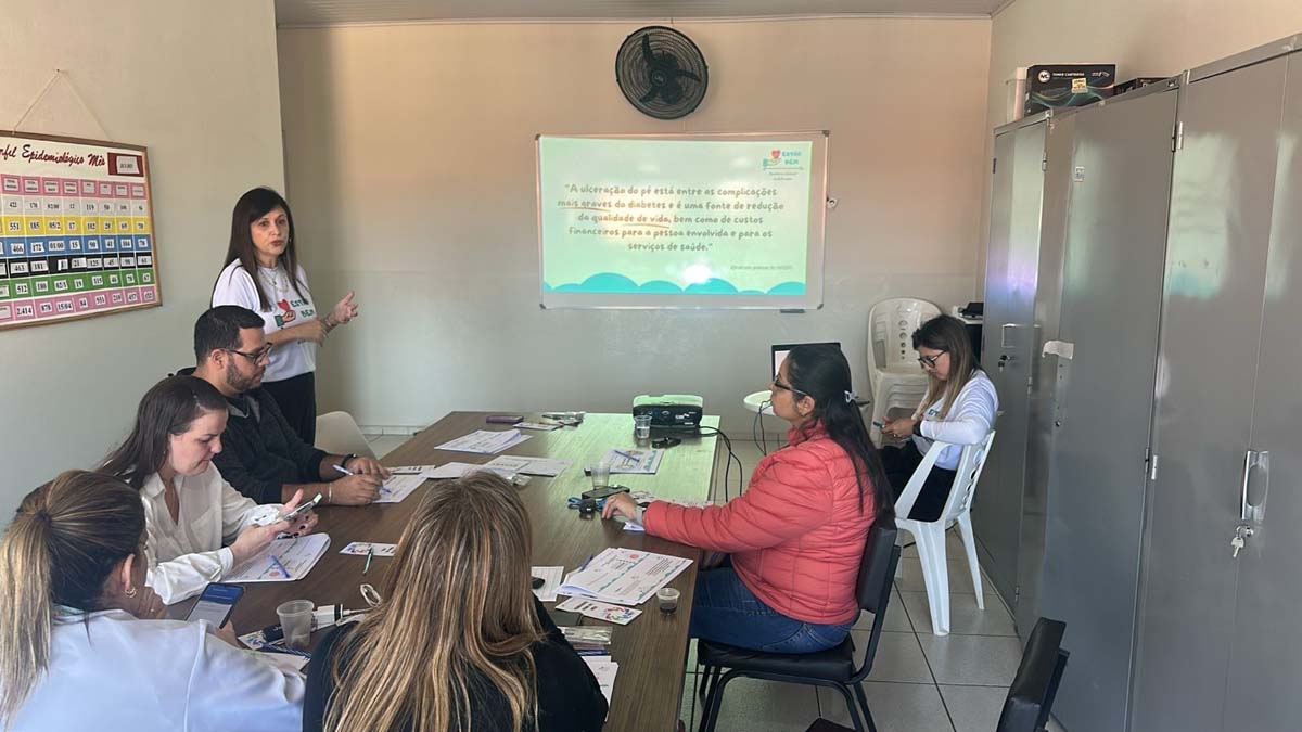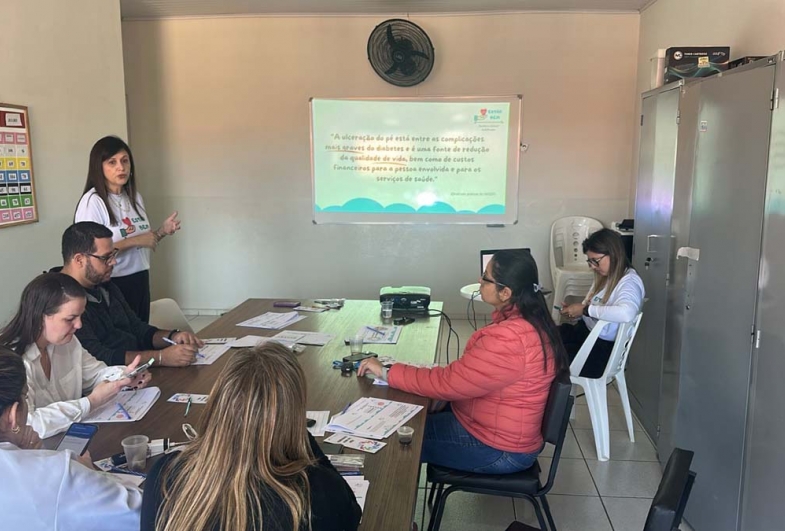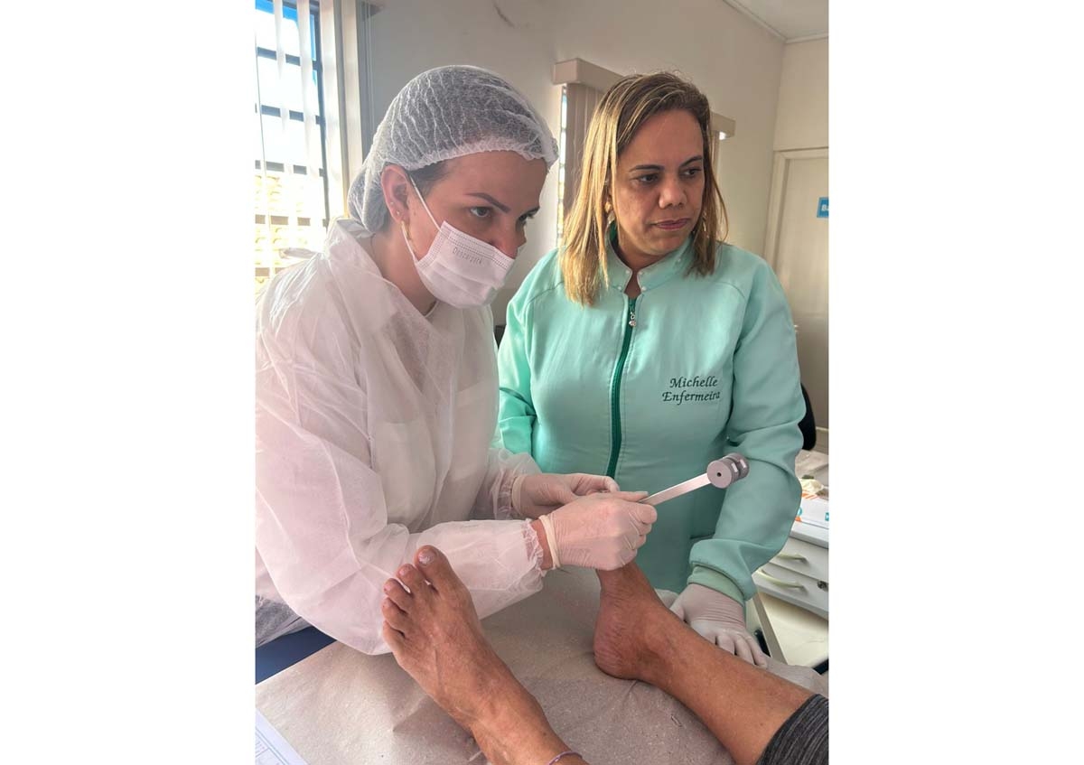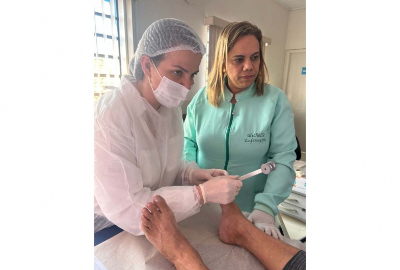 Além do curso de atualização de feridas, os enfermeiros também tiverem treinamento para exame do pé diabético; este exame é uma avaliação feita em pessoas com diabetes para identificar lesões, úlceras e diagnosticar alterações de sensibilidade, a partir dessa classificação o enfermeiro pode orientar e prescrever cuidados para evitar complicações principalmente as amputações.