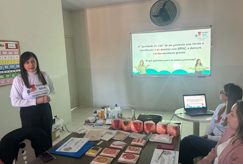 Com objetivo de atualizar os profissionais de enfermagem da atenção básica sobre novas tecnologias em curativos, padronizar as condutas na rede básica e reduzir complicações e internações, a Coordenadoria Municipal de Saúde de Taguaí disponibilizou treinamento para garantir a reabilitação e qualidade de vida para os pacientes.