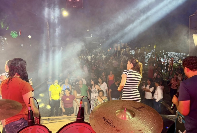 Na noite da virada, o Show de Ano Novo animou o público com apresentações musicais que garantiram muita diversão. O cantor Luka Faria abriu a programação, levando ao palco um repertório envolvente que aqueceu a plateia e preparou o clima para a chegada do novo ano.