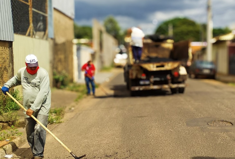 Desde que o prefeito Roberto Araujo assumiu a administração, em janeiro de 2025, os servidores realizam trabalho diário e contínuo de zeladoria: tapa-buracos, roçadas, capina, melhorias no calçamento, limpeza urbana, recuperação de vias, patrolamento e cascalhamento. O trabalho é permanente e ajustado conforme as necessidades de cada região da cidade.